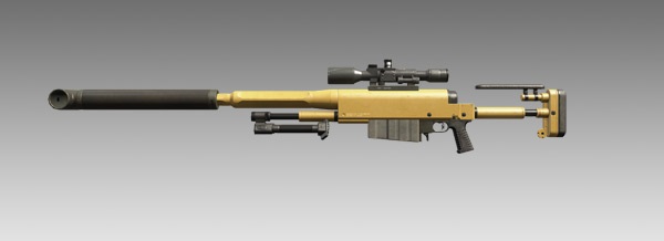 2015年12月のアップデートより登場した超高火力のスナイパーライフル。2-8倍のスナイパースコープ並びにサプレッサー(小)を標準装備。カスタマイズ不可。凄まじい開発コストがかかるものの、それに見合った威力と射程を持つ銃。その威力たるや、戦闘ヘリを一発で炎上させ、バトルドレス☆9を着た警備兵を一発でキル出来るほど。反面、使用コストがシャレにならないレベルで高く、使用するプレシャスメタルの量はなんと赤コンテナ7.5個分に相当。気軽には使えないシロモノである。 なお、余談ではあるがこのライフルのサプレッサーは非常に特徴的で、先端がT字に曲がっている。見た感じはシュモクザメに似ている。